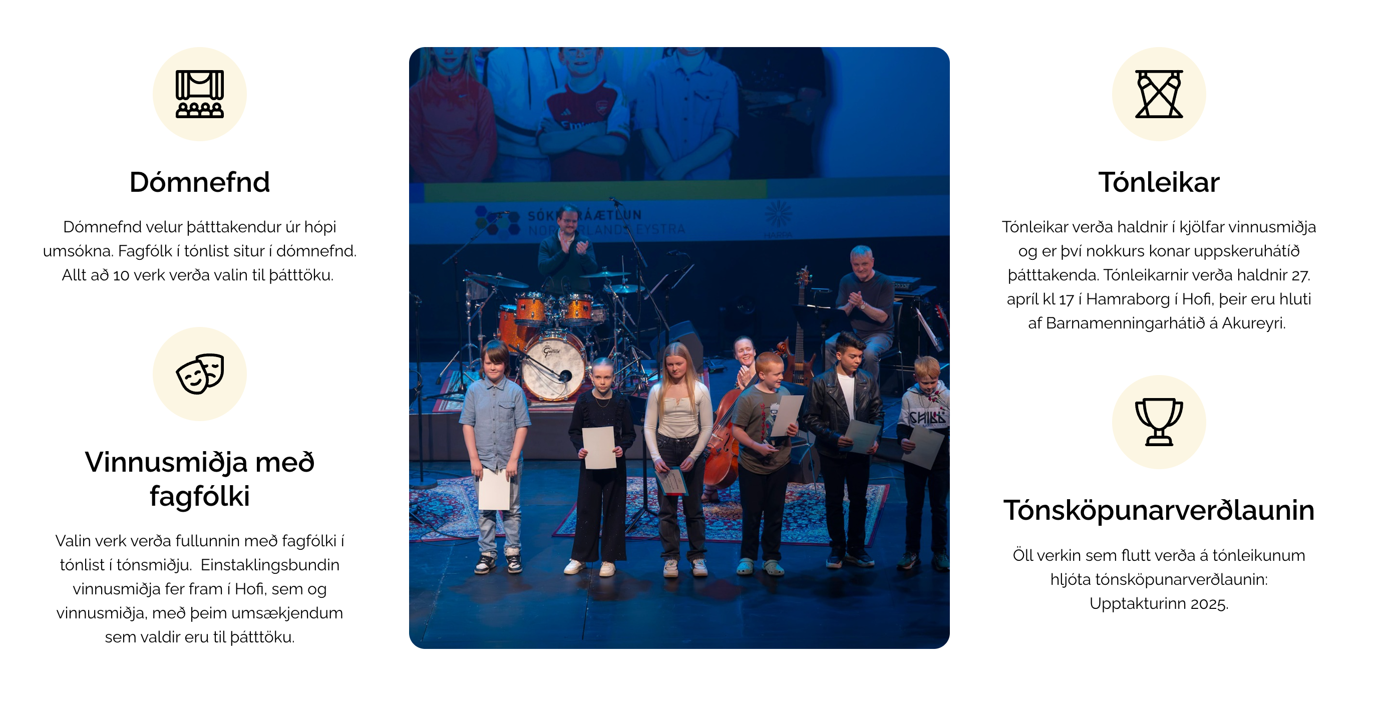 Hér má sjá þau verk sem komust áfram í fyrra: https://www.ruv.is/sjonvarp/spila/upptakturinn-2025-akureyri/38188/bc61m4