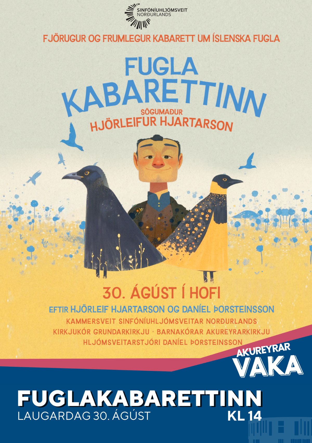 Í kabarettformi er fuglunum gefið rými til að láta ljós sitt skína – allt frá háværum og grautfúlum sílamáfi til háfleygra krumma. Hjörleifur Hjartarson er sögumaður og kynnir fuglana en tónlist Daníels Þorsteinssonar bindur verkið saman með fjölbreyttum hljómum og stílbrigðum. Lögin eru bæði létt og hnyttin en jafnframt djúp og hugvekjandi – þar sem íslensk náttúra, þjóðtrú og húmor mætast á lifandi hátt.