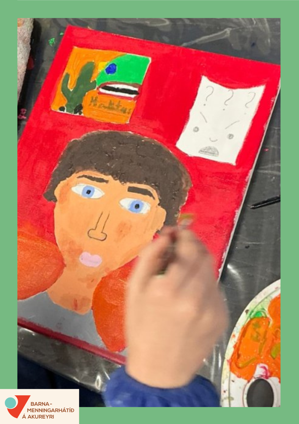 Nemendur í 5.-6. bekk Glerárskóla heimsækja þrjá listamenn á Akureyri og skrásetja heimsóknina með ipad. Nemendur vinna svo málaða andlitsmynd af listamönnunum og setji inn á hana jafnframt það sem þeim fannst spennandi og áhugavert. Jafnframt eru sýnd myndbönd frá heimsókninni og skissur sem nemendur unnu í hugmyndavinnu.