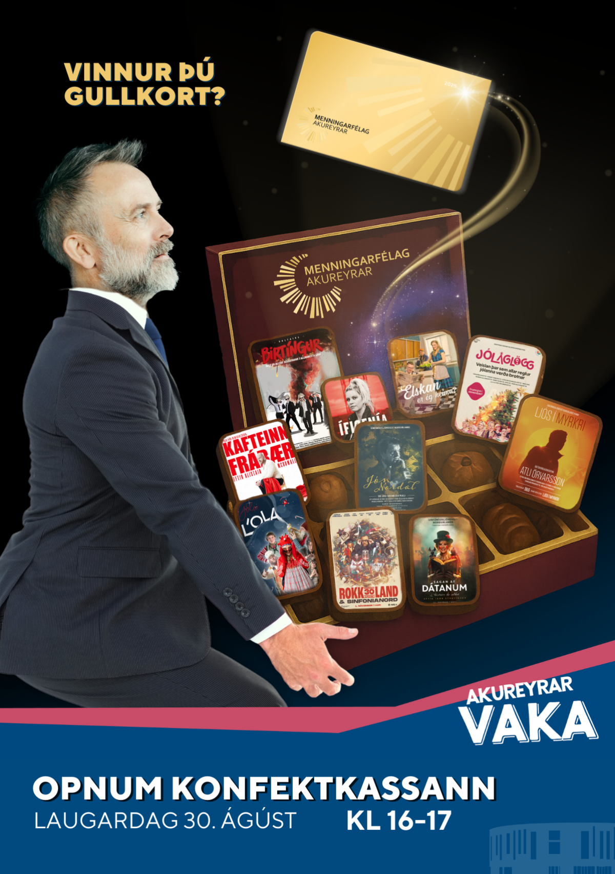 Óvæntur fylltur konfektmoli, GULLkort Menningarfélagins, mun gleðja einn heppinn gest í salnum!